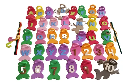 Brinquedo Eva Pescaria Alfabetização Números E Letras 40 Pçs